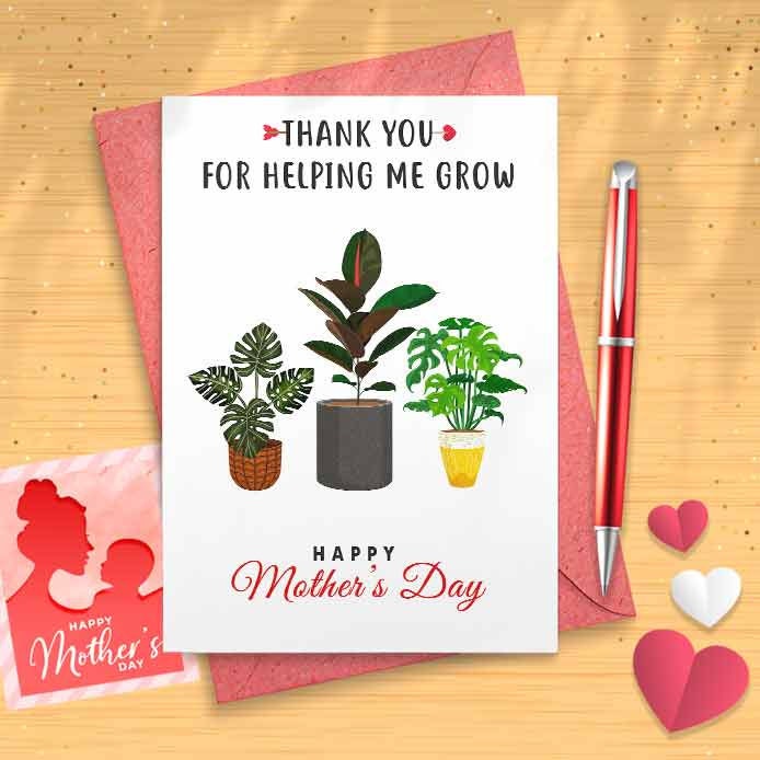 Mother's Day Card - Thank You For Helping Me Grow, Minimalist Card, Plant Card [00887]