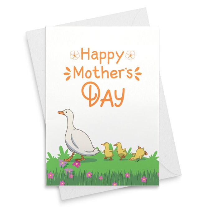 Mother Duck & Ducklings Mother's Day Card - Cute Animal Spring Card for New Moms, Happy Baby Duckling Holiday Greeting [02184]