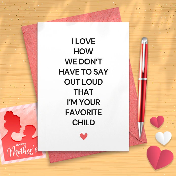 Mother's Day Card From Favorite Child - I Love How We Don't Have To Say Out Loud That I'm Your Favorite Child - Kraft Greeting Card [02736]
