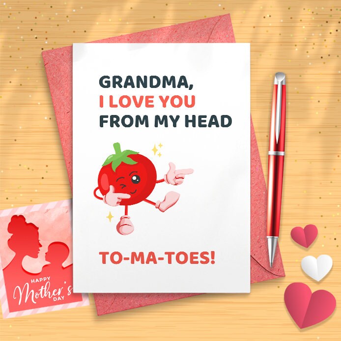 Funny Tomato Pun Card For Grandmother, Grandmother Birthday Card, Funny Mothers Day Card, Funny Card For Grandma, Nana Card, Memaw [02109]