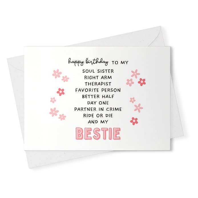 Bestie Birthday Card, Best Friend Birthday Card, Best Friend Card, Birthday Card, Poem Card, Funny Birthday , My Partner In Crime [02459]