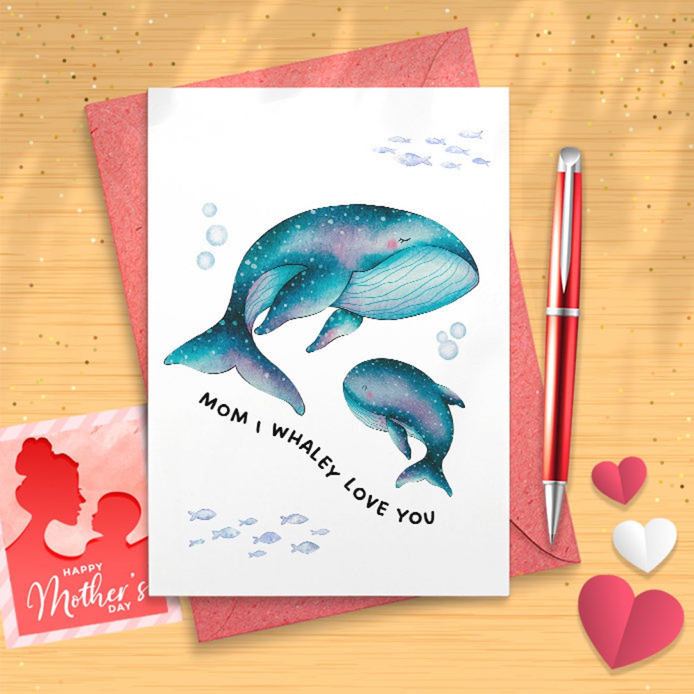 Mom, I Whaley Love You A6 Greeting Card / Mothers Day Whale Card / Illustrated Under The Sea Card For Mother's Day Or Birthday [02797]