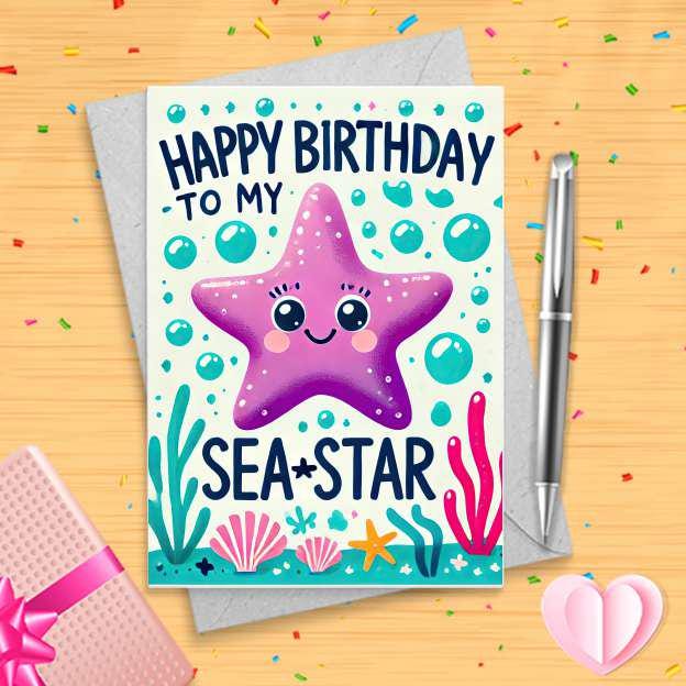 Funny Sea-Star Birthday Card - Unique Starfish Pun Greeting for Sister - Quirky and Fun Birthday Card for Kids and Adults [03319]