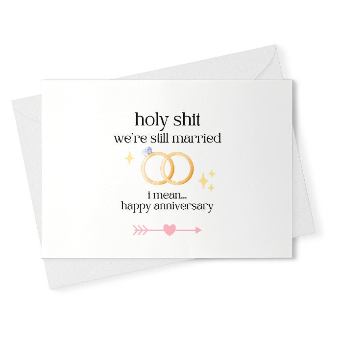 Snarky Anniversary Card - Holy Shit We're Still Married - Funny Gift for Him or Her - Rude Humor for 10-Year Celebration [01854]