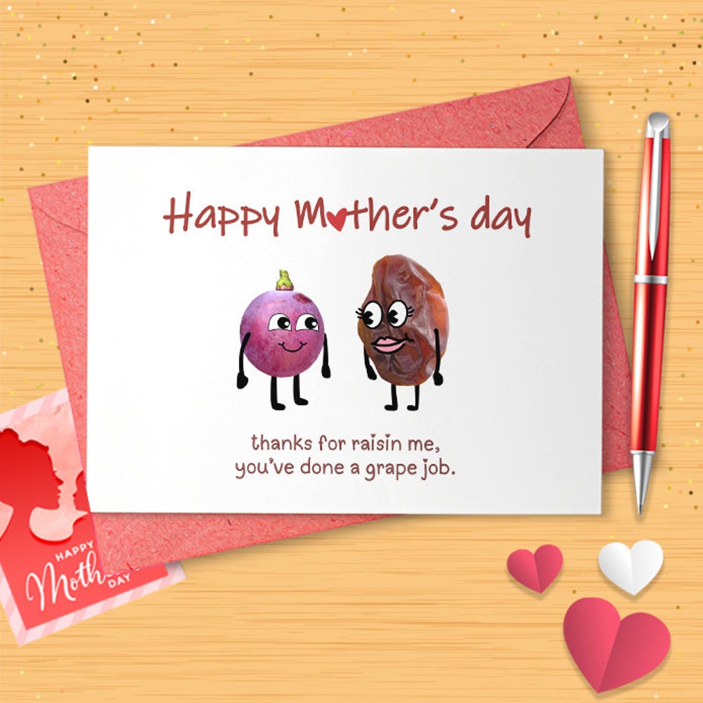 Funny Mother's Day Card - Thanks for Raisin Me, Grape Job - Humorous Mom Gift from Son or Daughter - Handmade Luxury Card [02679]