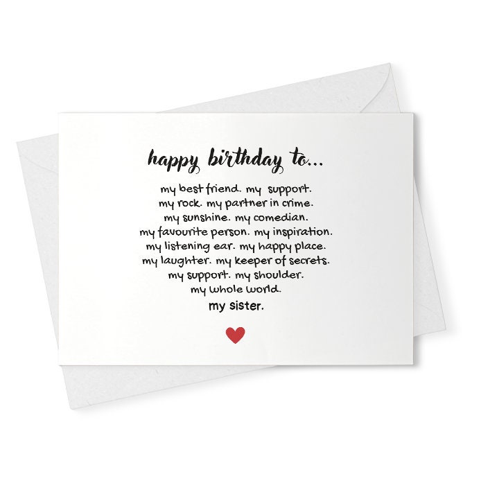 Sister Birthday Card Poem - Birthday Card Sister - Birthday Card For Sister - Special Sister Birthday Card - Red Foil Handmade Card [02474]