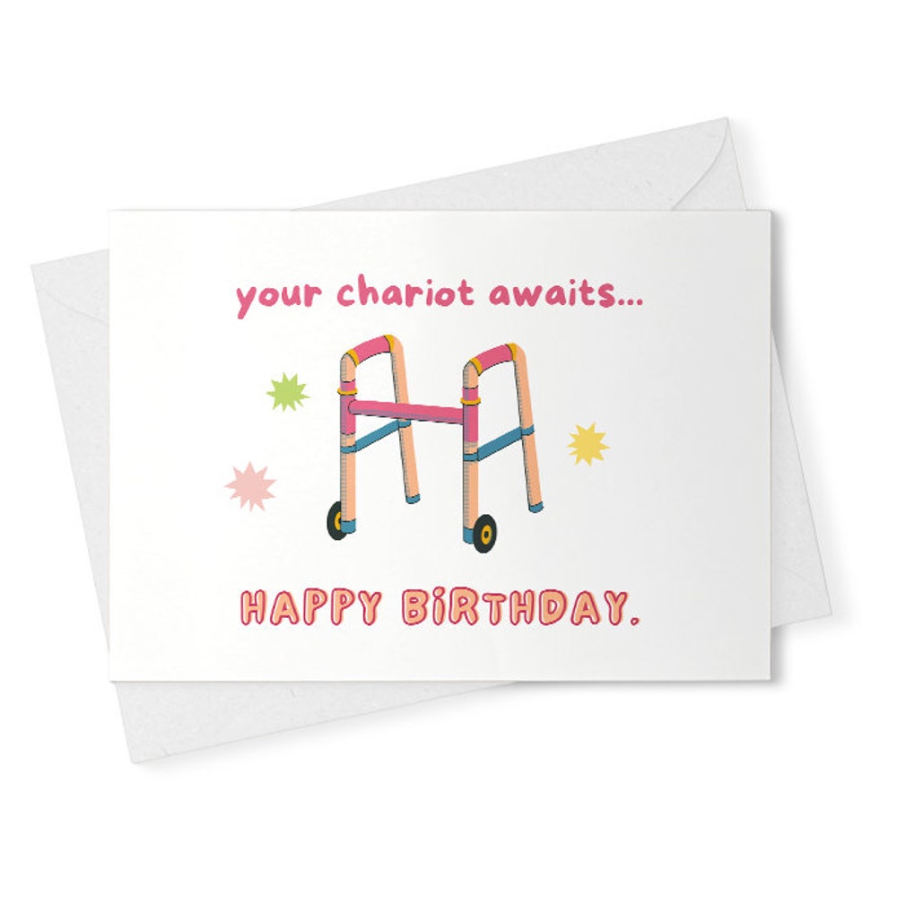 Your Chariot Awaits' (Zimmer Frame) - Funny Birthday Card for Mom or Dad - 50th 60th 70th 80th - Age Joke - Happy Birthday Grandad [02490]